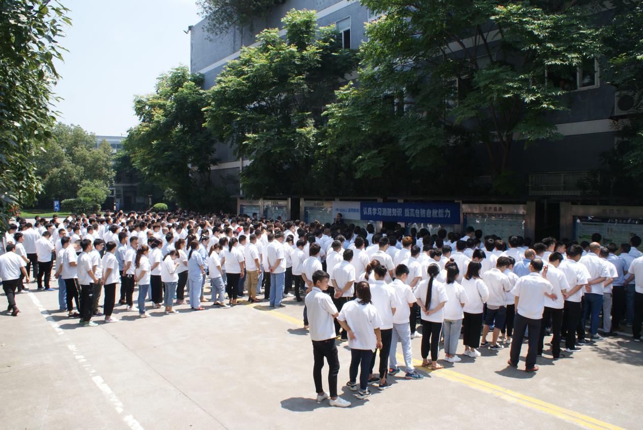 原來,公司正在進行消防緊急疏散演習,演習過程僅五分鐘,五分鐘后,公司全體員工安全撤離到公司廣場,