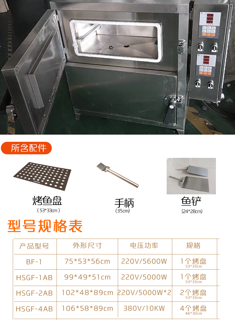 雙層雙盤烤魚箱,適合一天出魚量在四五十條魚左右的烤魚店。我公司是河南省生產(chǎn)智能紅外烤魚箱的廠家,該烤魚箱是國家專利審核過的產(chǎn)品,請大家放心訂購。此款烤魚箱不僅銷往本省區(qū)域,而且遠銷上海 北京 廣州 深圳 天津 重慶 蘇州 武漢 成都 杭州 南京 青島 長沙 無錫 佛山 寧波 大連 鄭州 沈陽 煙臺 濟南 東莞 泉州 南通 唐山 鎮(zhèn)江 滄州 西安 福州 長春 合肥 濰坊 徐州 常州 溫州 紹興 濟寧 淄博 鹽城 揚州 昆明 南昌 臨沂 東營 臺州 泰州 嘉興 洛陽 廈門 金華 南寧 襄陽 宜昌 邯鄲 泰安 榆林 惠州 威海 中山 保定 吉林 南陽 德州 岳陽 太原 聊城 常德 漳州 貴陽 淮安 衡陽 茂名 濱州 蕪湖 湛江 菏澤 柳州 株洲 許昌 江門 咸陽 周口 廊坊 湖州 宿遷等城市。恒晟牌烤魚箱典型客戶:小城漁家,魚貴人,魚酷,魚派,食客沸騰,巫山烤魚,烤功夫,諸葛烤魚,三國烤魚,萬州烤魚,重慶烤魚,七公江湖燒烤等。